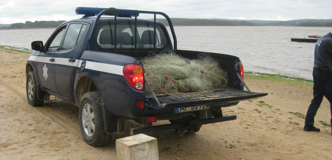 Ainda no espelho de água da Lagoa de Óbidos, junto à margem norte, no local conhecido como “Ponta das Casinhas”, foi ainda detetada a navegar uma embarcação de pesca local que regressava da faina, tendo sido intercetada e fiscalizada. Da fiscalização subsequente verificou-se a existência de redes de tresmalho a bordo, com sinais de terem sido utilizadas. As referidas artes de pesca apresentam características ilegais e não conformes com a legislação específica da Lagoa de Óbidos. Foram ainda detetadas redes de tresmalho ilegais numa viatura comercial, que se encontrava estacionada junto da margem da Lagoa.