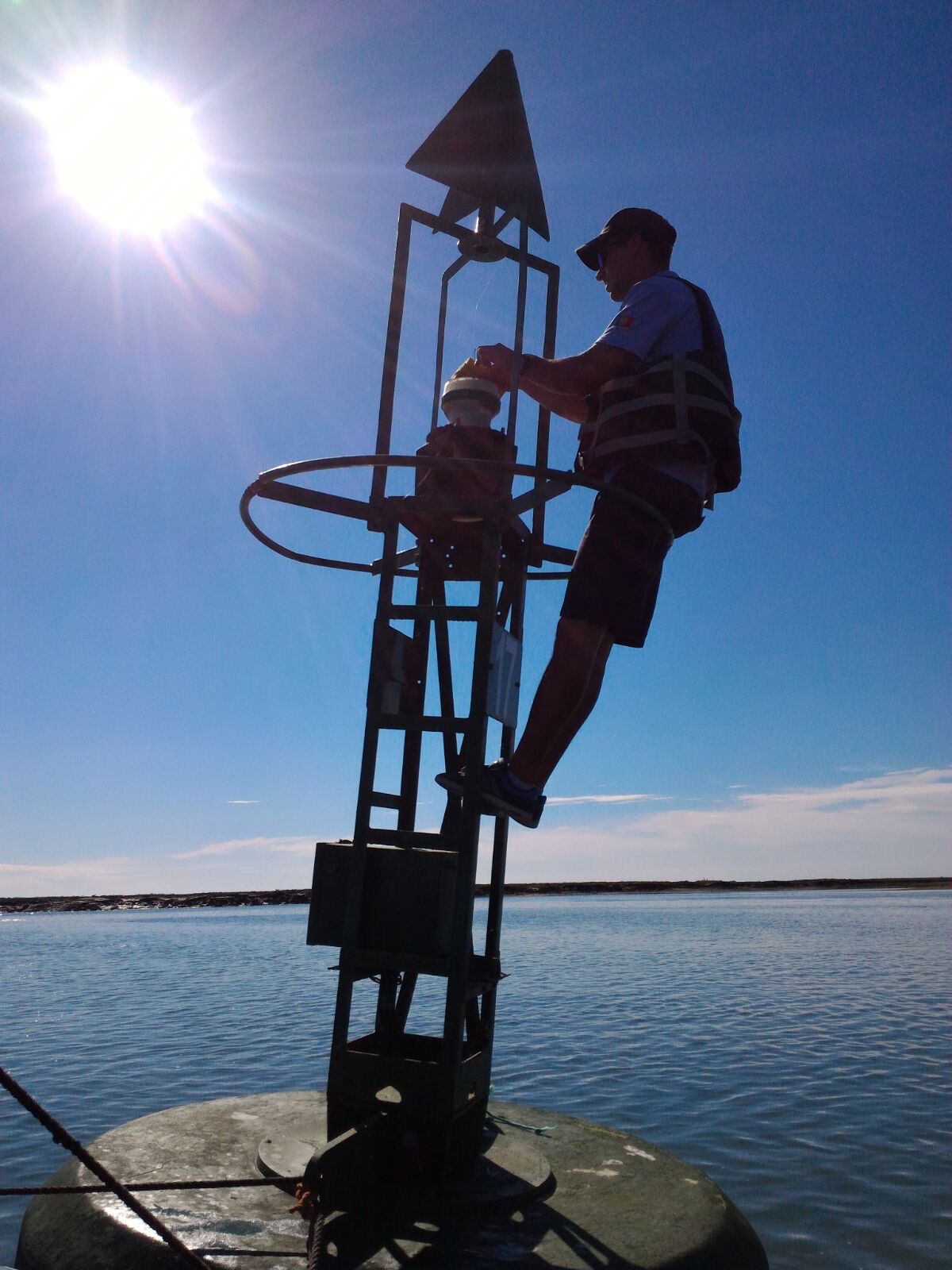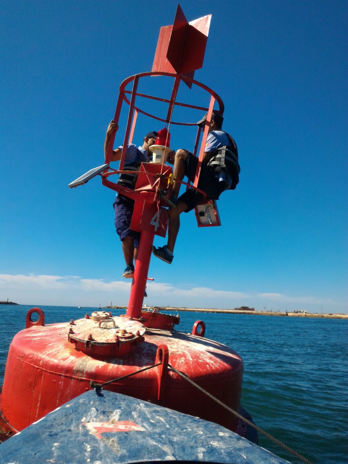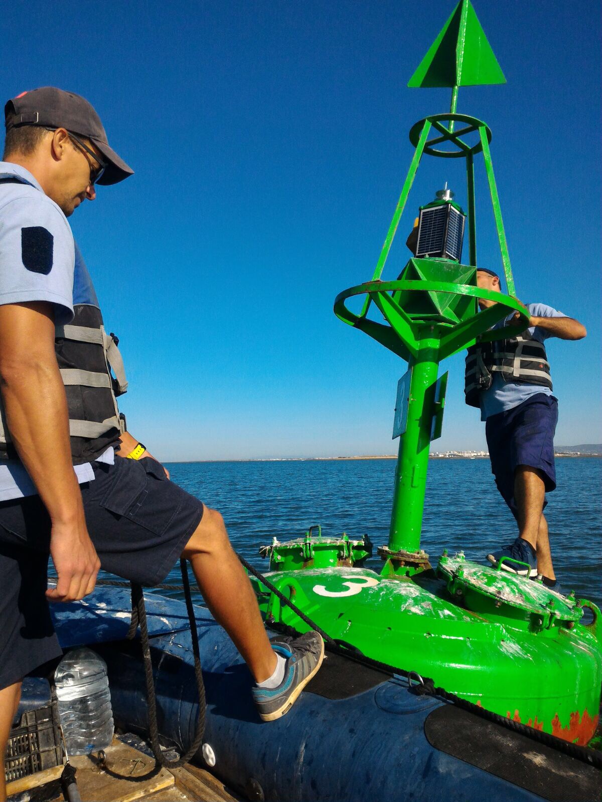 Nesta ação aproveitou-se para fazer a integração do novo estagiário do último curso de faroleiro, em ambiente de balizagem.