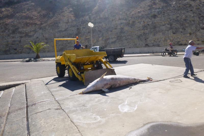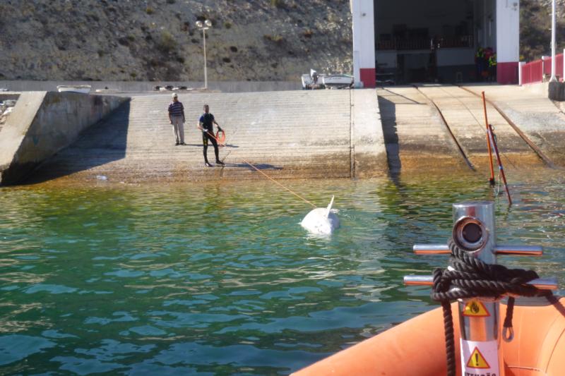 O animal foi retirado da água com recurso a meios do Município de Vila do Bispo e, após ter sido contatado o Instituto de Conservação da Natureza e Florestas, foi decidido efetuar o transporte para o aterro municipal.