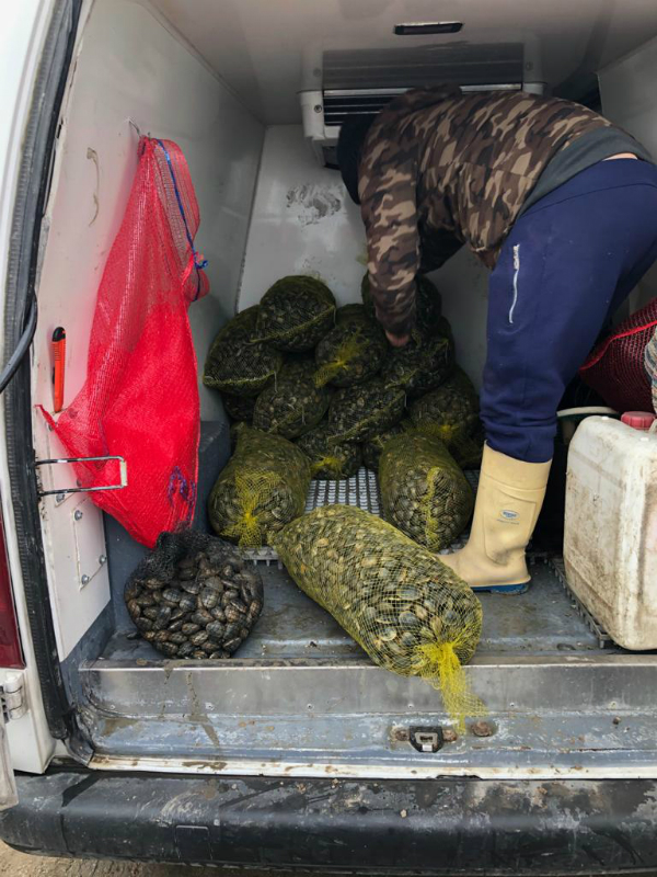 ​Desta ação, resultou a fiscalização de quatro apanhadores e uma viatura comercial que se encontrava carregada com cerca de meia tonelada destes bivalves, já acondicionados no seu interior sem os respetivos documentos de acompanhamento – Documento de Registo de Moluscos Bivalves, referentes à zona de produção dos mesmos.