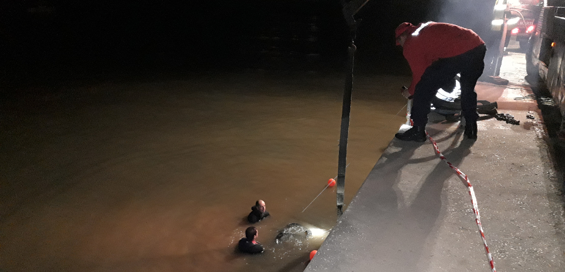A viatura foi retirada da água pelas 21h30, com auxílio de