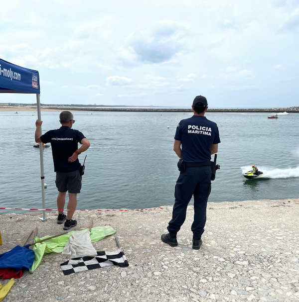 embarcação a efetuar a interdição da área onde decorria a prova,