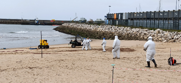 Para combater o foco de poluição foram empenhados um total de 36 elementos do Departamento Marítimo do Centro, da Capitania do Porto de Lisboa, da Direção de Combate à Poluição do Mar e da Administração do Porto de Lisboa, que se distribuíram pelas áreas de atuação e procederam à contenção do material poluente com recurso a diversos meios de combate à poluição, como barreiras de contenção, sistemas de recuperação de poluição do mar, equipamento ligeiro de limpeza de praias ou tanques de armazenamento de poluente portáteis.