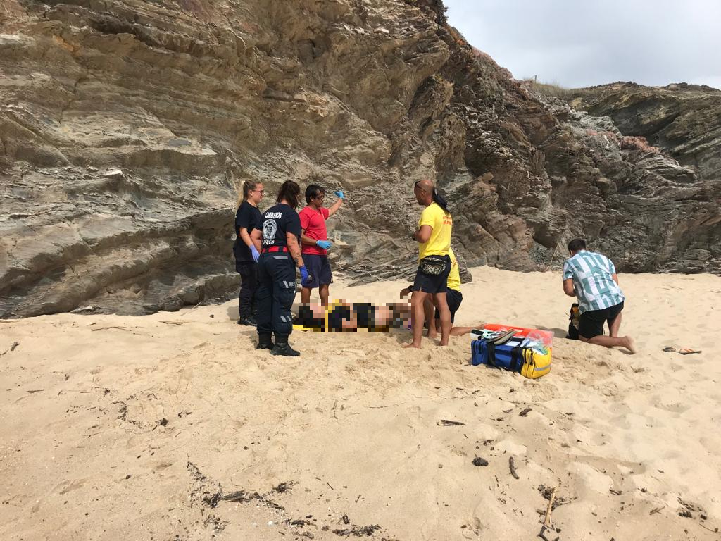 À chegada ao local, os elementos do Projeto "SeaWatch" auxiliaram a vítima, que apresentava queixas na zona dos joelhos, em colaboração com nadadores-salvadores das praias adjacentes. A vítima foi posteriormente retirada para fora da praia pelos elementos do Projeto "SeaWatch", em colaboração com os elementos dos Bombeiros Voluntários de Sines, tendo sido posteriormente transportada por uma ambulância dos bombeiros para uma unidade hospitalar.